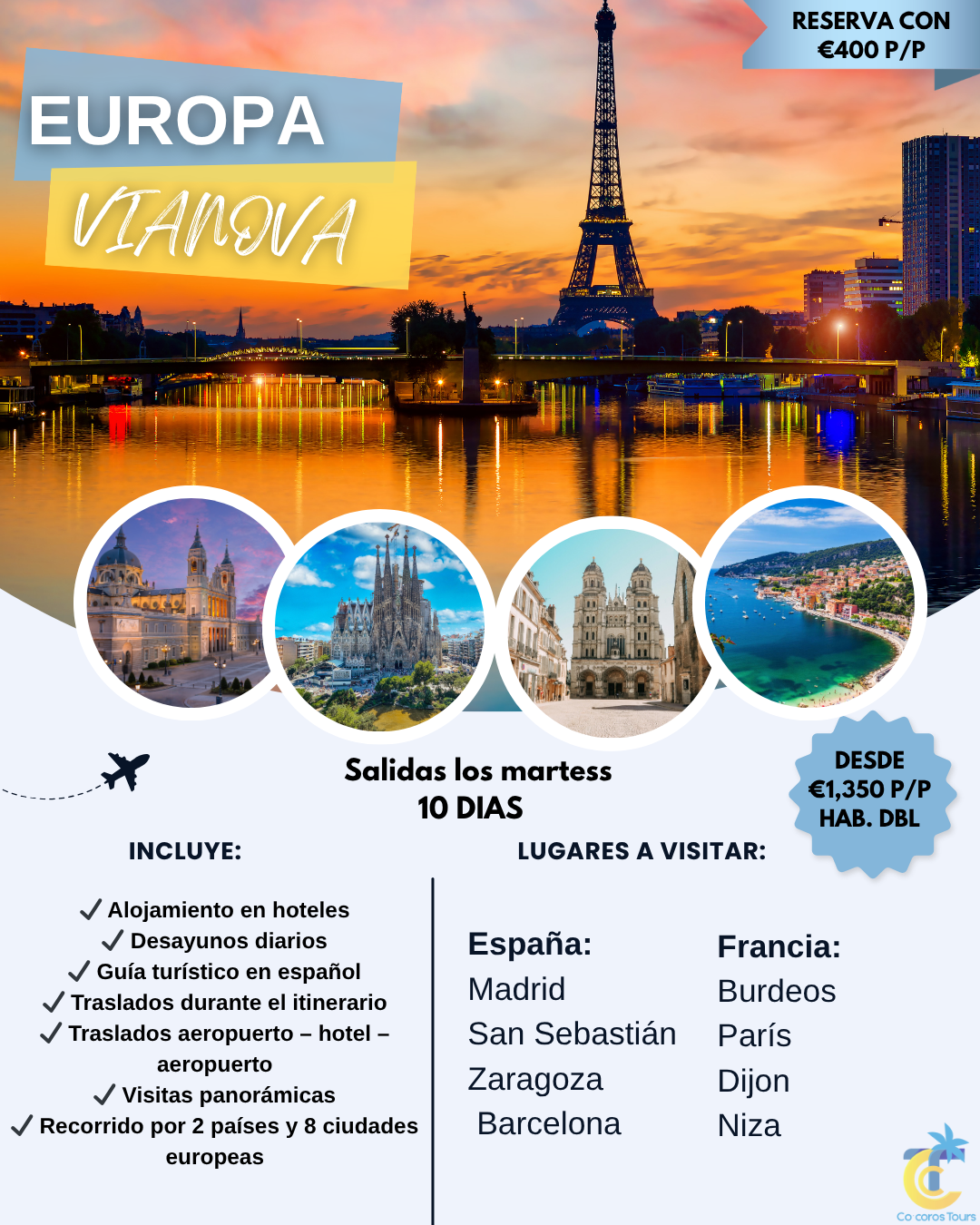 Viaje a Europa desde €1,350 P/P DBL